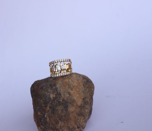 White Stone Set Gold Ring, 14g