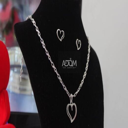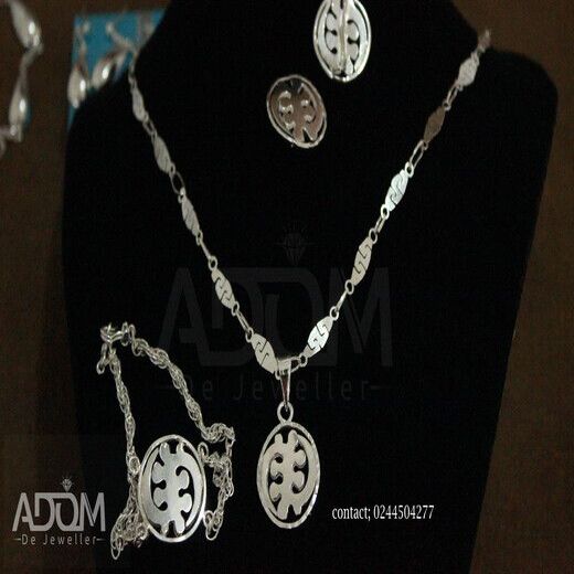 Gye Nyame White Necklace with Earrings, 30g