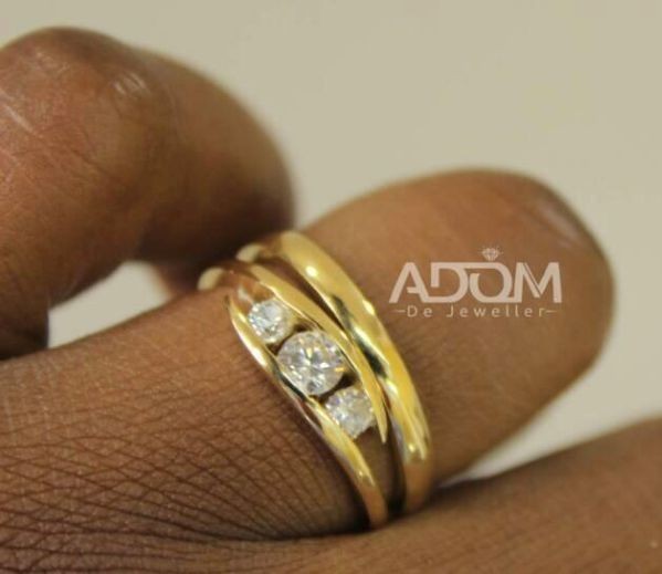 Three Diamond Stone Gold Ring, 7g