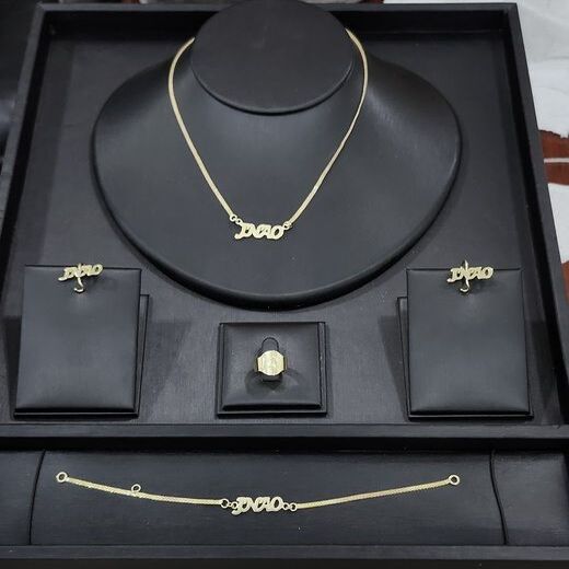 Custom Name Text Gold Necklace with Bracelets & Earrings, 10g