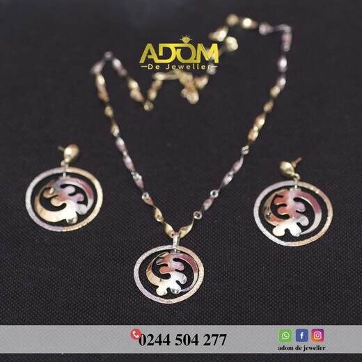 Custom Gye Nyame Gold Necklace with Earrings, 20g