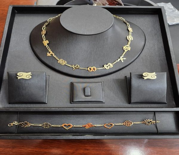 Multi Adinkra Gold Necklace with Earrings, 30g