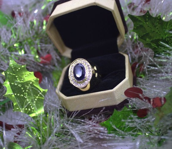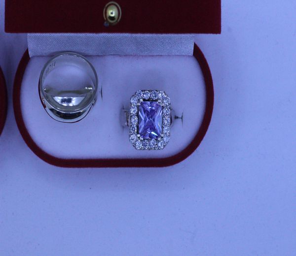 Rectangular-Shaped Violet Stone Gold Ring, 15g