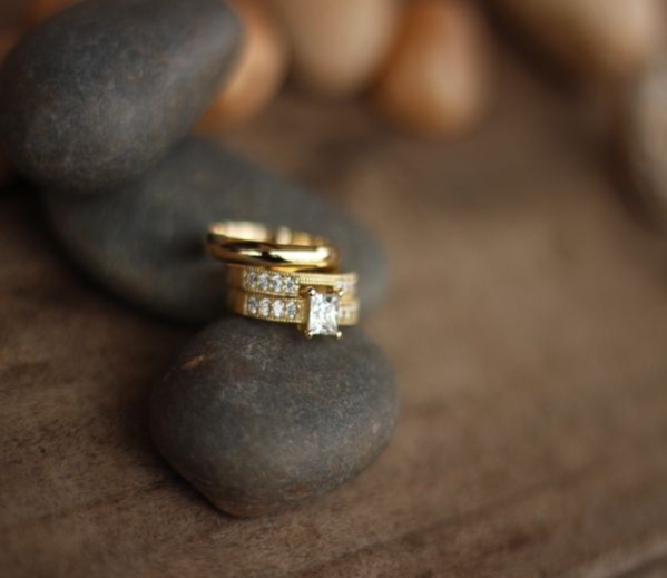 Set of Heart Shaped Silver Stone Gold Ring, 18g