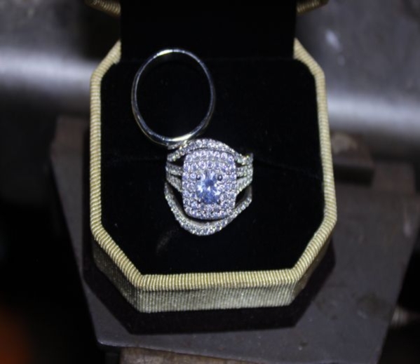 Set of Heart Shaped Silver Stone Gold Ring, 18g