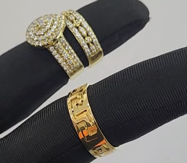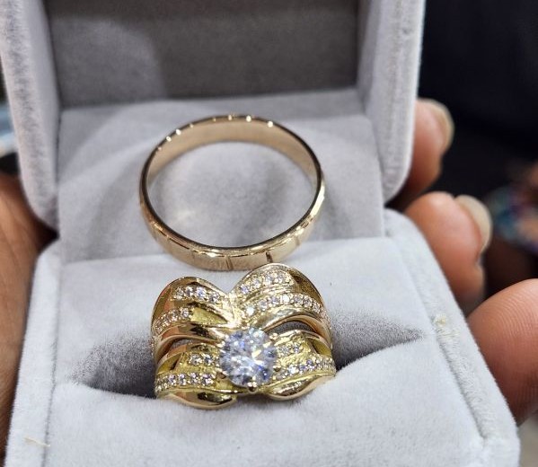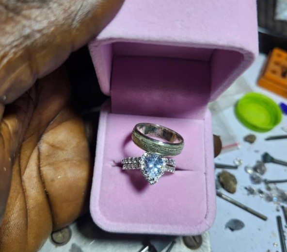 Set of Heart Shaped Silver Stone Gold Ring, 18g