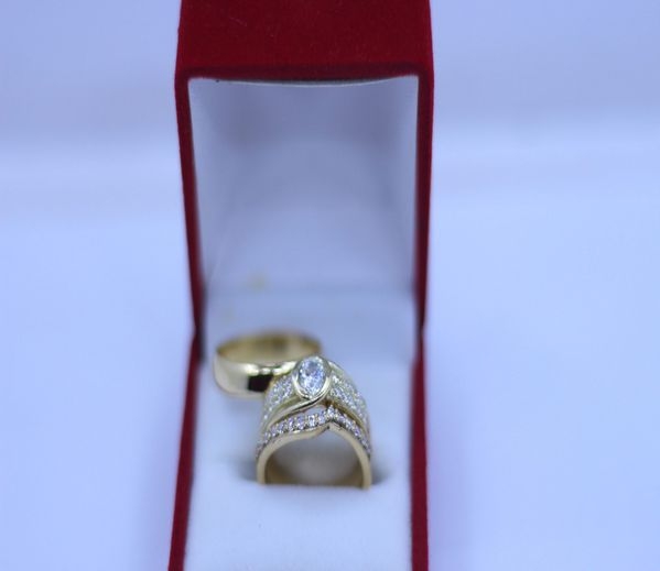 Set of Heart Shaped Silver Stone Gold Ring, 18g
