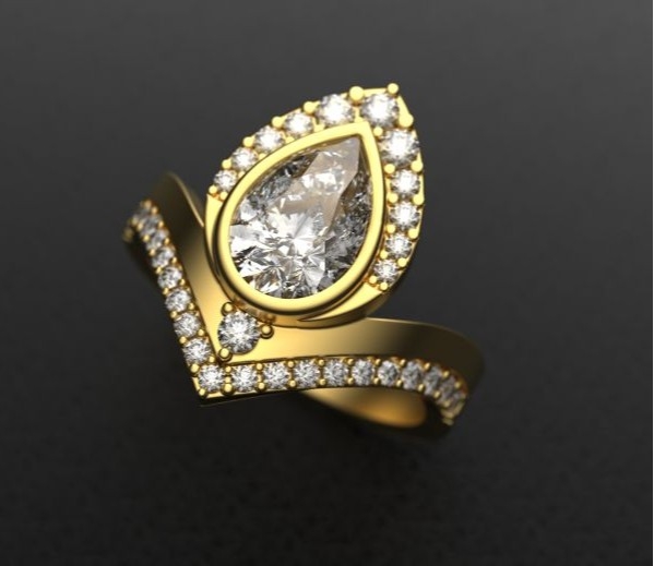 Set of Heart Shaped Silver Stone Gold Ring, 18g