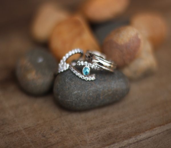 Set of Heart Shaped Silver Stone Gold Ring, 18g
