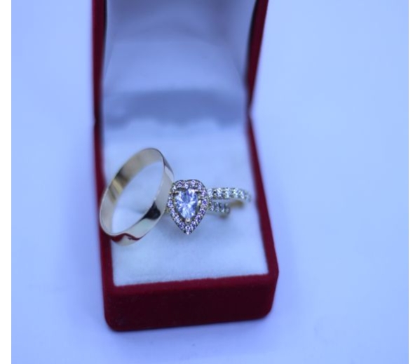 Set of Heart Shaped Silver Stone Gold Ring, 18g