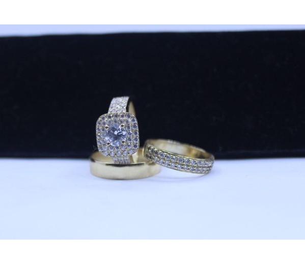 Set of Heart Shaped Silver Stone Gold Ring, 18g